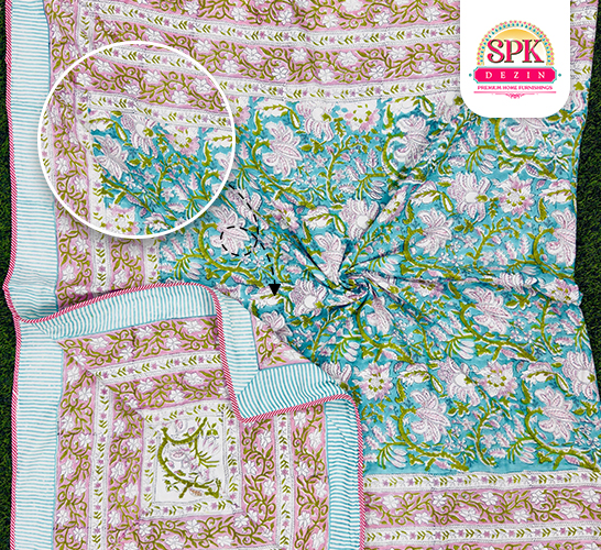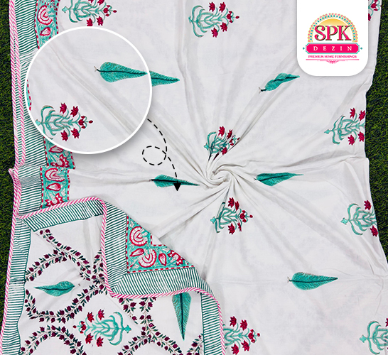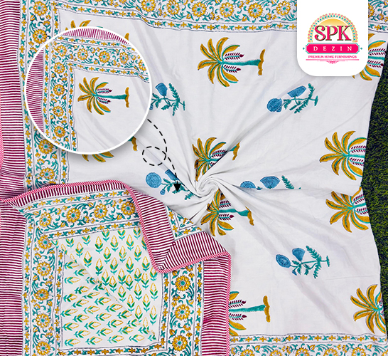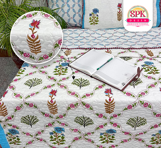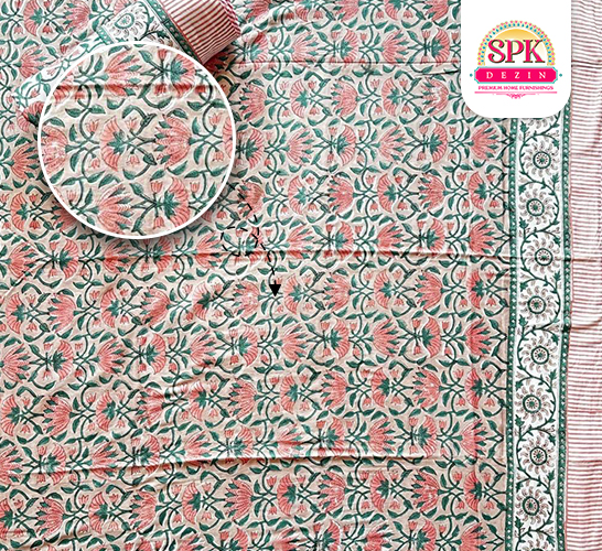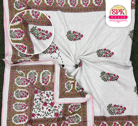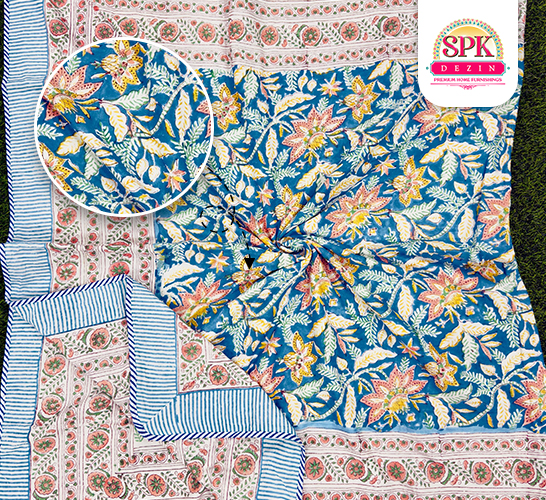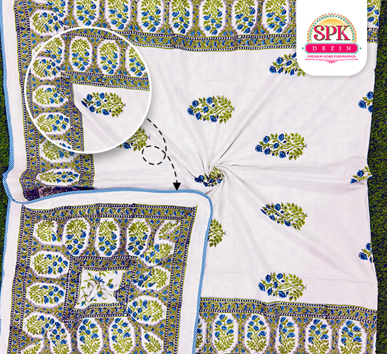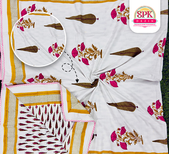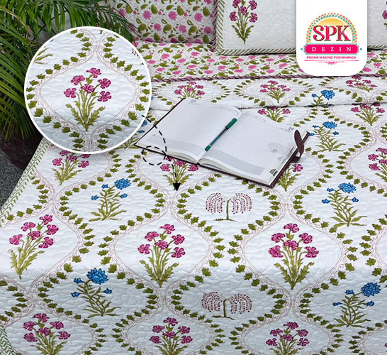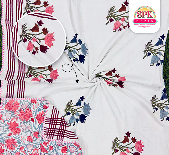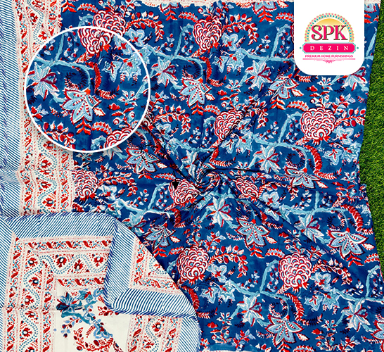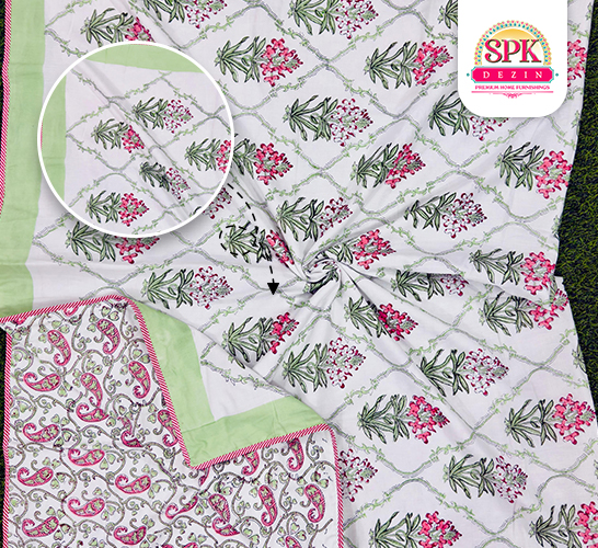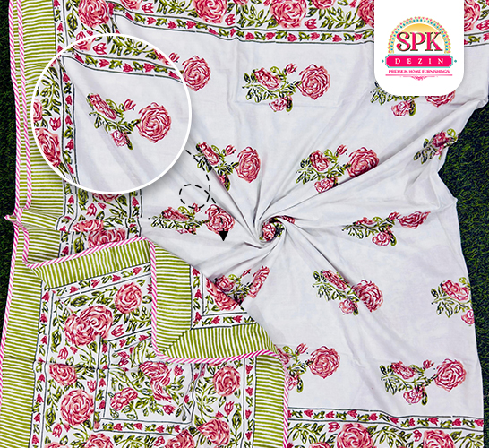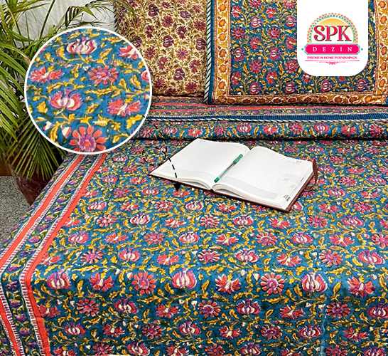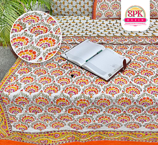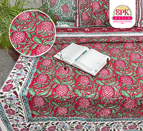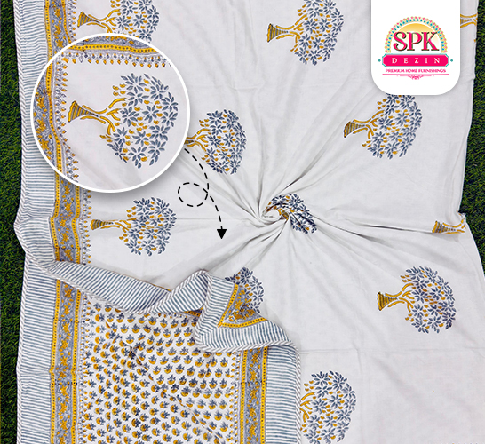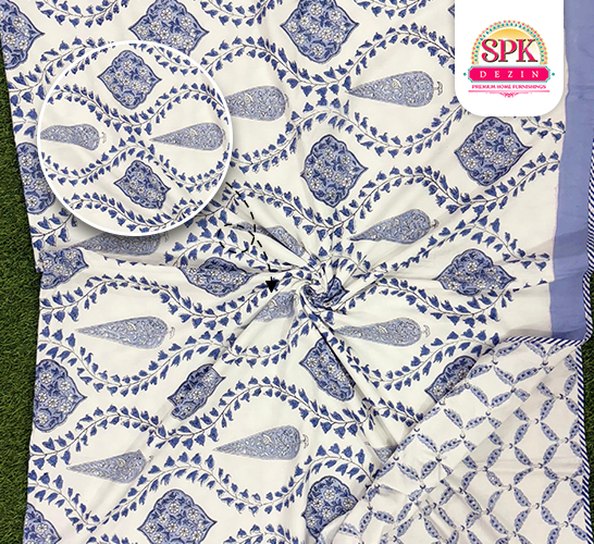 Skillfully handcrafted using authentic block printing techniques, each bedsheet is a unique work of art, reflecting the rich heritage of Indian textile design. Made from 100% pure cotton, it offers a luxuriously soft and breathable feel, ideal for year-round comfort. Its generous 90 x 108 inch dimensions ensure a neat and full fit on double and queen-sized beds.
